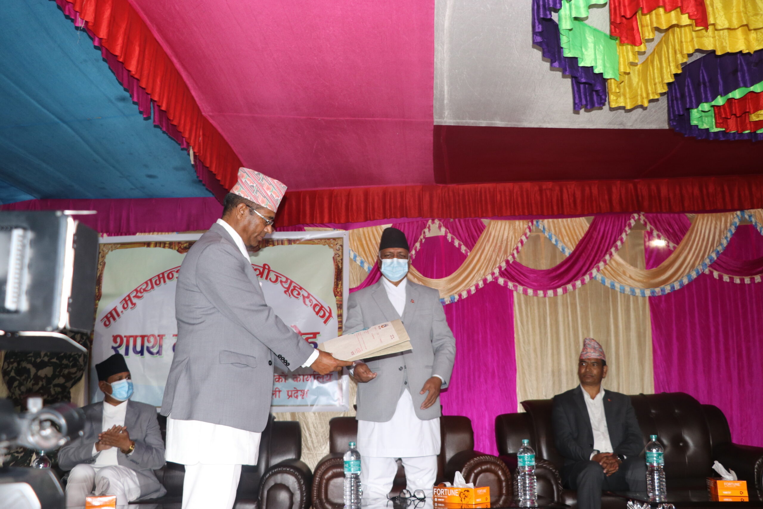 निवर्तमान मुख्यमन्त्री महेन्द्रबहादुर शाहीले राजीनामा दिए पछि प्रदेश प्रमुख गोबिन्दप्रसाद कलौनीले सोमबार मुख्यमन्त्रीको दाबी पेश गर्नका लागि आह्वान गरेका थिए । तोकिएको समय भित्र तीन दलिय गठबन्धनका प्रदेशसभा सदस्यहरुको हस्ताक्षर लिएर आजै उनले दाबी गरे पछि प्रदेश प्रमुख कलौनीले मुख्यमन्त्री नियुक्त गरेका हुन ।