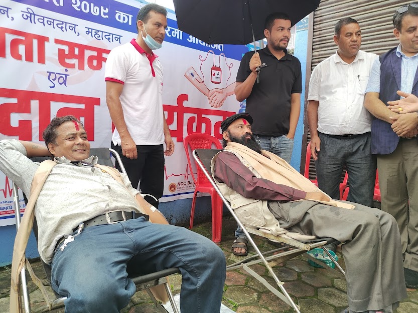 सुर्खेत । ५६ औं राष्ट्रिय रक्तसञ्चार दिवसको अवसरमा सुर्खेत उद्योग वाणिज्य संघले बृहत रक्तदान कार्यक्रम गरेको छ । नेपालका सर्वाधिक स्वयंसेवी रक्तदाता प्रेमसागर कर्मचार्य र कर्णालीका सर्वाधिक रक्तदाताले संयुक्त रुपमा रक्तदान गरेका छन् ।