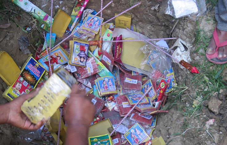 कार्यालयका अनुसार बरामद गरिएका नागिन, फुलझेरी, छुरछुरी, आलु बम, रकेट बम, चक्र, आकाशे बम लगायतका पटाका नष्ट गरिएको हो । सप्तरीको सीमावर्ती नाकाहरूबाट जिल्लामा बिस्फोटक पर्दाथहरू भित्र्याइएको स्थानीयवासीहरुको भनाइ छ ।