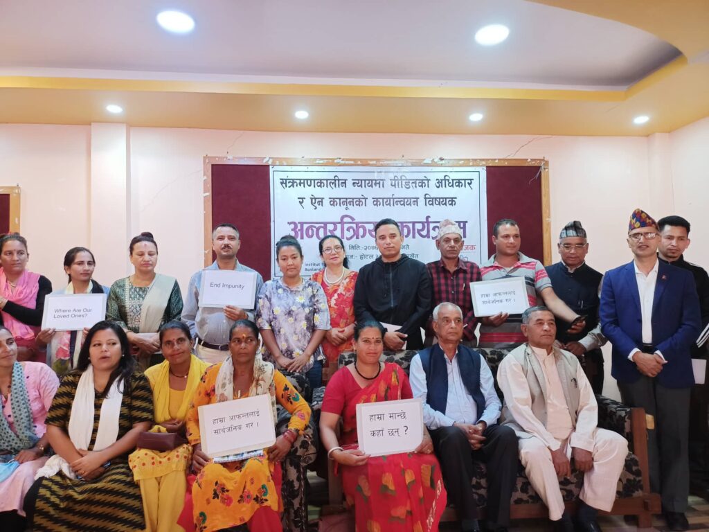 बुधबार एड्भोकेसी फोरमले आयोजना गरेको संक्रमणकालिन न्यायमा पिडितको अधिकार र ऐन कानुनको कार्यान्वयन विषयक अन्तर्रक्रिया कार्यक्रमका सहभागी पिडितहरुले यस्तो बताएका हुन् ।